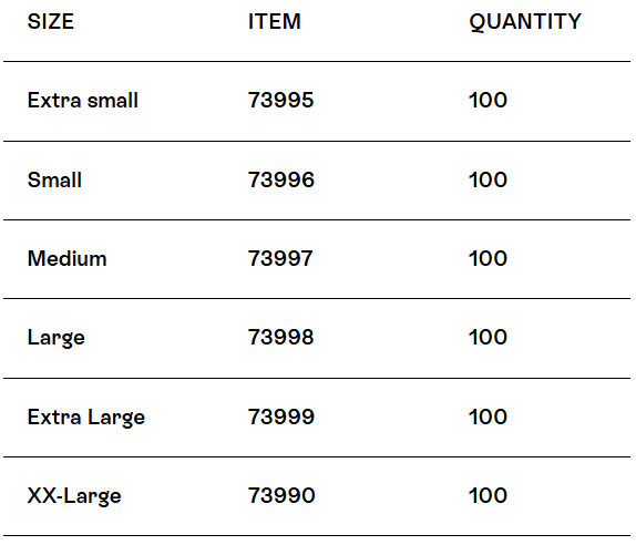 Packaging: 1000 gloves/case, 10 boxes of 100 gloves