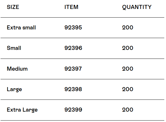 Packaging: 2000 gloves/case, 10 boxes of 200 gloves