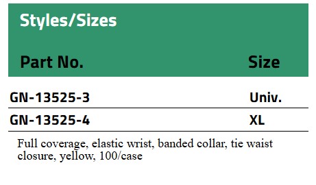 GenPro gowns keep your clothes clean and remain comfortable all day long. With exceptional breathability and moderate barrier protection, this polypropylene gown performs well in dry, non-hazardous environments. The strong, lightweight GenPro fabric provides a limited barrier to particulates and contamination. Banded collar and tie waist closure.